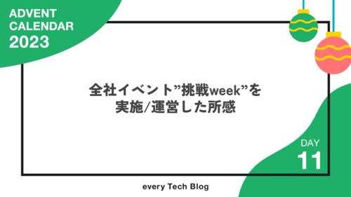 この記事は every Tech Blog Advent Calendar 2023 の11日目です。 こんにちは。トモニテ開発部iOS担当兼、開発組織活性化委員会リーダーを勤めている國吉です。 今回はエブリーで初の試みとなる開発部全体イベント”挑戦week”を開催/運営してみての所感を書…