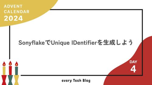 はじめに この記事は every Tech Blog Advent Calendar 2024 の4日目の記事です。 DelishKitchenやヘルシカのバックエンドやらインフラやらをやっているyoshikenです。 今回は弊社でも利用しているUID生成に便利なSonyflakeについて説明していきます。 UIDと…