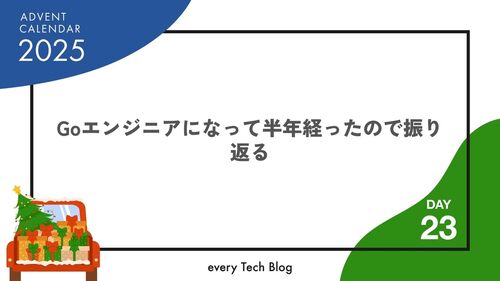 Goエンジニアになって半年経ったので振り返る この記事は every Tech Blog Advent Calendar 2025 の 23 日目の記事です。 はじめに こんにちは!デリッシュキッチンで主にバックエンドの開発を担当している秋山です。 私は今年の6月にエブリーへバックエンド…